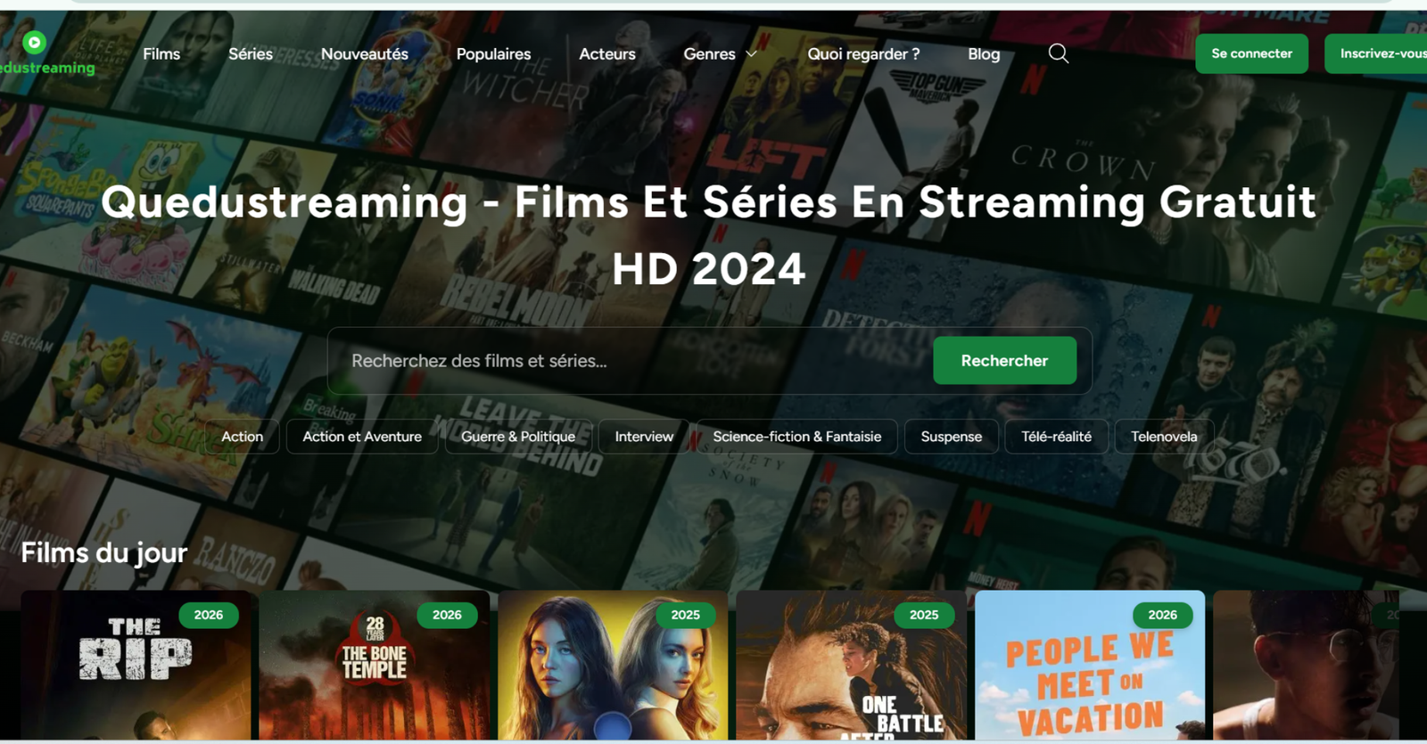 Quedustreming est un site de streaming qui propose des films et séries en ligne. Il est souvent utilisé par des internautes qui veulent regarder des films gratuits, sans abonnement, en mode streaming gratuit et illimité.